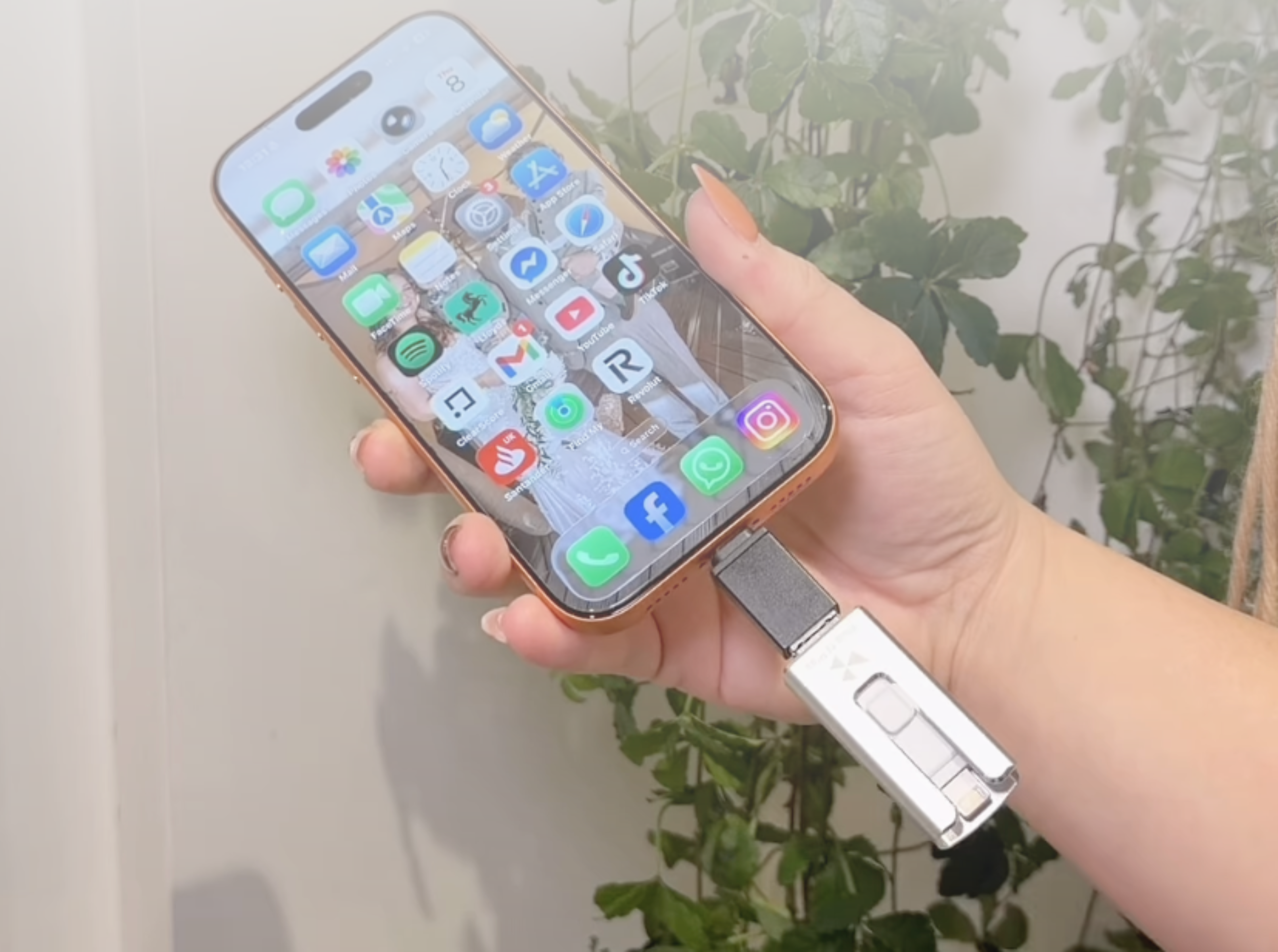 Connect the 4-in-1 USB stick to your iPhone or Android phone